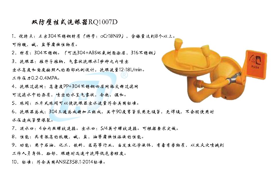 • 产品名称: 双防壁挂式洗眼器RQ1007D