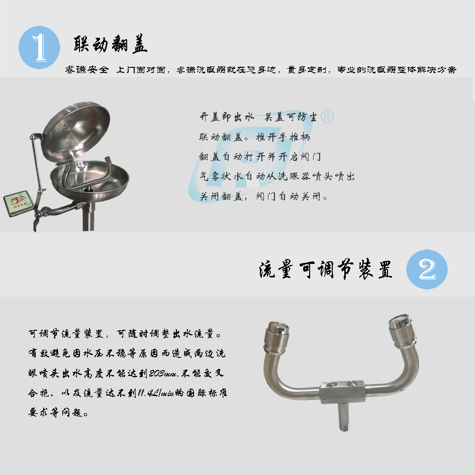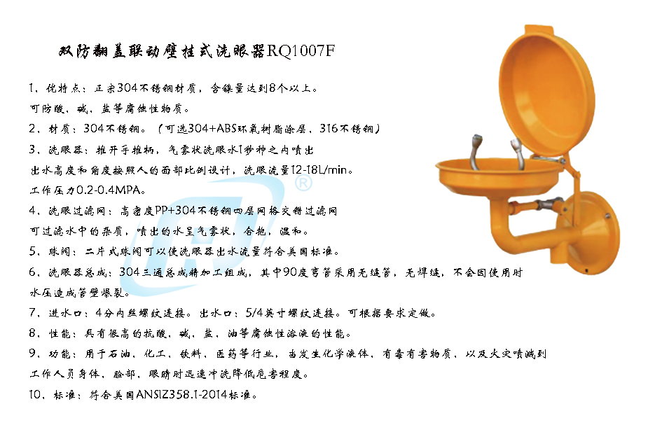 • 产品名称: 双防翻盖联动壁挂式洗眼器RQ1007F